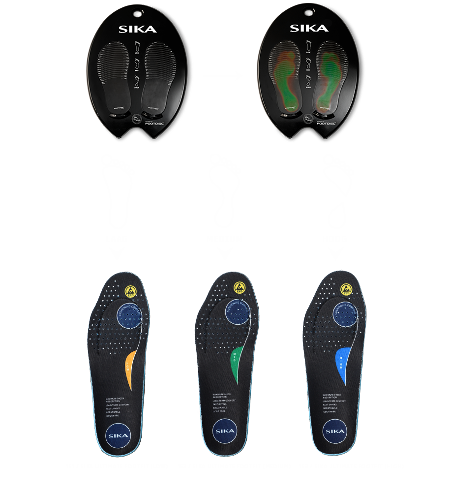 SIKA SPEED SCAN® is een supersnelle en nauwkeurige voetenscanner, die in 15 seconden de afmeting, voetholte en gewichtsverdeling van de voeten registreert. Zo makkelijk te gebruiken, dat u zelf de meting kunt uitvoeren en zelf uit de 3 ULTIMATE FOOTFIT inlegzolen met steun in de voetholte degene kunt kiezen die het beste bij uw voeten past.