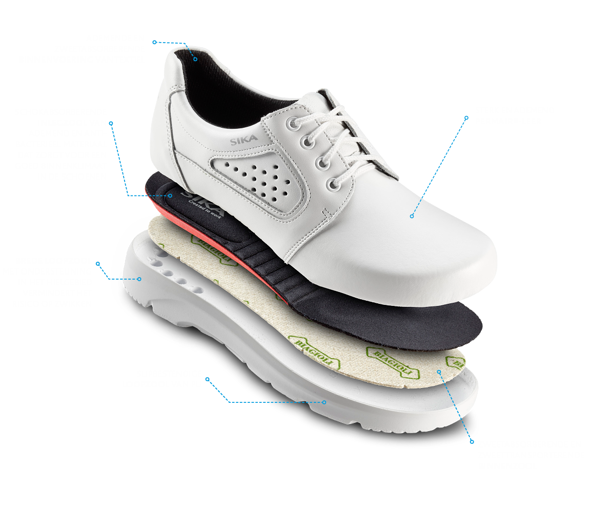 Het SIKA assortiment is vooral geconcentreerd rond schoenklompen voor alle branches/doeleinden en werkschoenen voor de foodsector en farmaceutische industrie, HORECA, service en reiniging, zorgsector en klompen voor alle branches.
