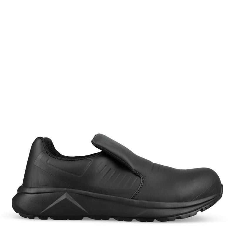 Lichtgewicht veiligheidsschoen met slip-on functie, gecertificeerd volgens de nieuwe normen van 2022. Ideaal voor personeel in de farmaceutische sector en de foodsector, waar hoge eisen worden gesteld aan hygiëne. Door het slip-on ontwerp van de schoen is de schoen gemakkelijk en snel aan en uit te trekken. De lichtgewicht aluminium veiligheidsneus beschermt de tenen tegen zware vallende voorwerpen. De loopzool, die uit rubber bestaat, zorgt voor een goed contact met de ondergrond en is bijzonder slipvast. De tussenzool is gemaakt van zacht, schokabsorberend EVA-schuim (SIKA Aerosol™ Foam), wat zorgt voor een lichtgewicht, comfortabele en flexibele schoen. De ademende inlegzool is schokabsorberend en bestaat onder andere uit geüpcycled PU-schuim, dat wordt gemaakt van schuimresten van de productie van inlegzolen. ESD-goedgekeurd.